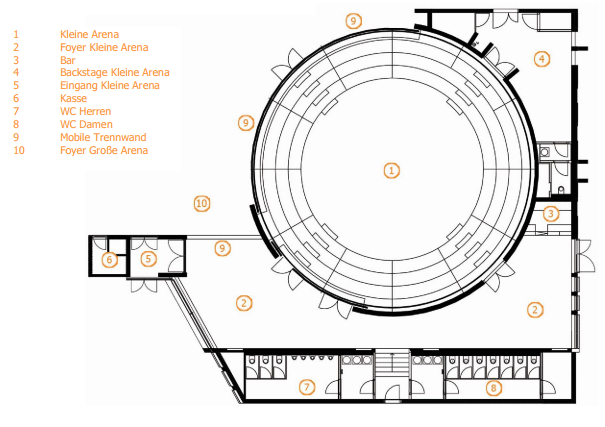 Die Kleine Arena ist eine separat zu bespielende Location mit eigenem Eingangsbereich und Foyer. Die Verwandlungsfähigkeit der Kleinen Arena steht der Großen Arena in nichts nach. Der Allrounder verfügt über eine flexible Bühne sowie Licht- und Tontechnik und hat ein Fassungsvermögen von 400 Personen. Die Kleine Arena bietet mit ihrer runden Grundfläche von 120 m² ausreichend Platz für vielfältige Veranstaltungen in kleinerem Rahmen. Bei größeren Veranstaltungen kann durch Zurückschieben der mobilen Trennwände die Kleine Arena mit dem Foyer verbunden werden. Dadurch entsteht ein großzügiger Veranstaltungsbereich, der bis zu 1.400 Gästen Platz bietet.
