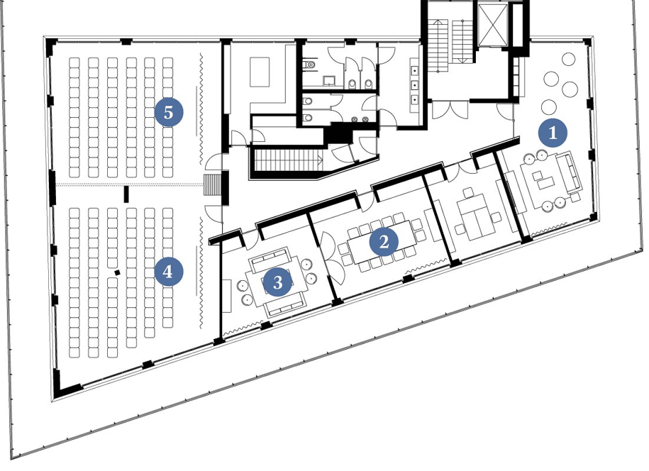 Elegant-minimalistisches Design und modernste Technik stellen sicher, dass Ihre Präsentation die maximale Wirkung erzielt. Dieser Raum eignet sich hervorragend für Vorträge, Produkteinführungen und Firmenfeiern aller Art.
