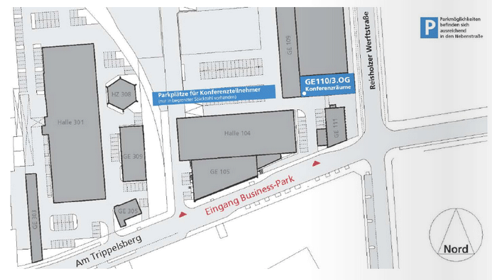 Es stehen ausreichend Parkplätze für PKW und LKW auf dem Gelände zur Verfügung.