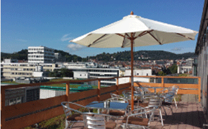 Das Trainingscenter ist im 6. Stockwerk des Gebäudes ansässig und gewährt dadurch einen herrlichen Blick über die Stadt.